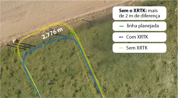 A falta de sobreposição das faixas de aplicação pode gerar falhas na utilização dos defensivos, gerando riscos à saúde da lavoura. Por outro lado, o excesso de sobreposição pode gerar desperdício de insumos. Com o XRTK, a sobreposição é exata, sem ocasionar perdas nem excessos.