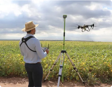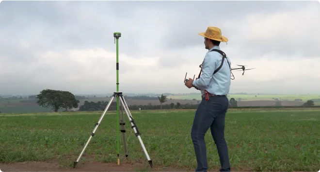 Sem referência de base RTK, o drone pode errar, em média, 5 m. Sim, no seu voo realizado todos os dias, ele está errando 5 m e você não percebe. O RTK custa 10% do valor do drone e pode fazer toda a diferença quando a falta de sobreposição é de 5 m — bem onde está a infestação da praga a ser combatida.
